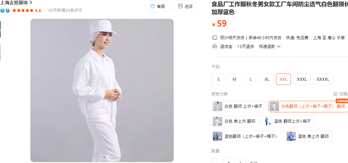 | 1 | 白色工作服 物料描述:纯棉 8XL2件6XL14件5XL4件4XL18件3XL12件2XL10件XL4件 夏款 | (上衣+裤子+帽子) | 64套 | 不送样 | |||